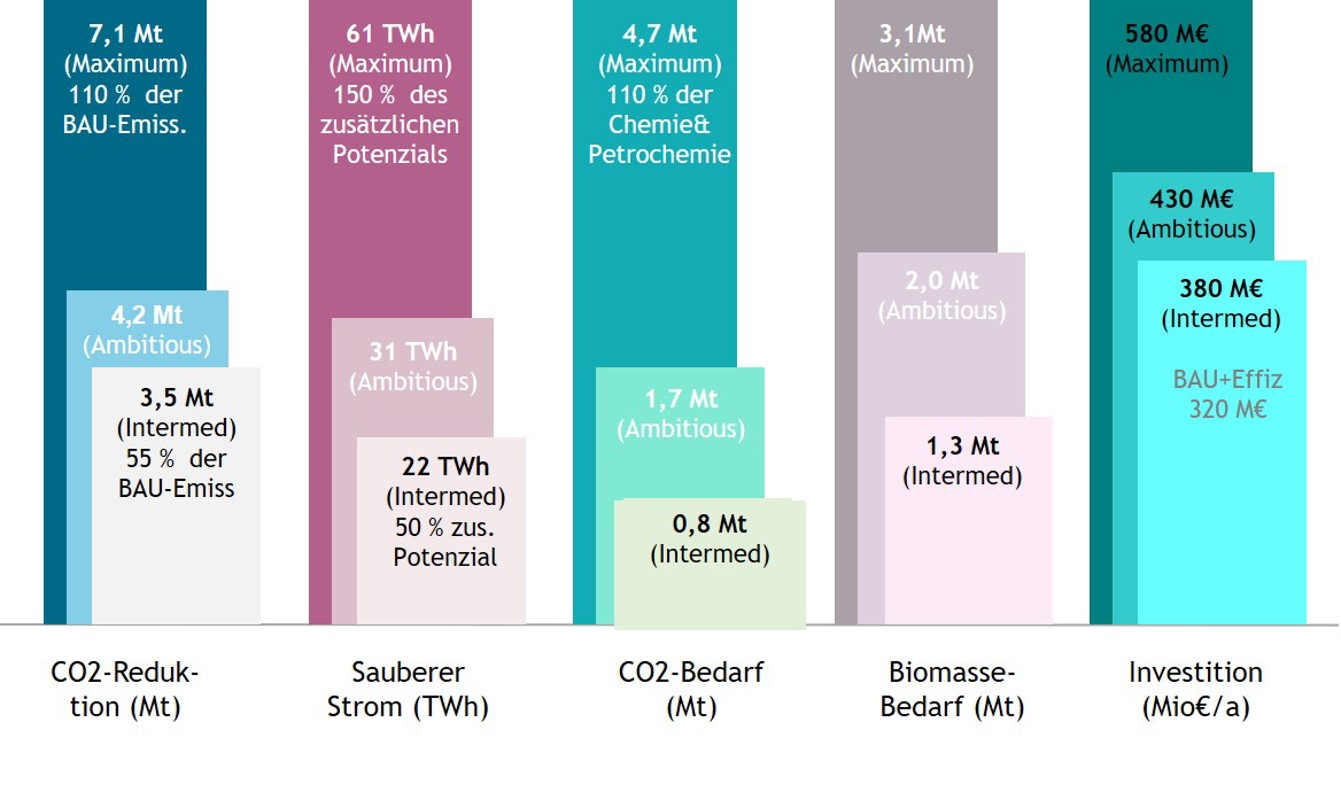 Um klimaneutral zu produzieren, müsste die Branche ihren Kohlenstoff aus CO2-Abgasen und Biomasse beziehen, den benötigten Wasserstoff mittels Elektrolyse aus Wasser gewinnen sowie die Dampferzeugung verstromen. Diese Verfahren sind wesentlich energieintensiver als die Herkömmlichen, die Rohöl und Erdgas als Ausgangsstoffe haben.